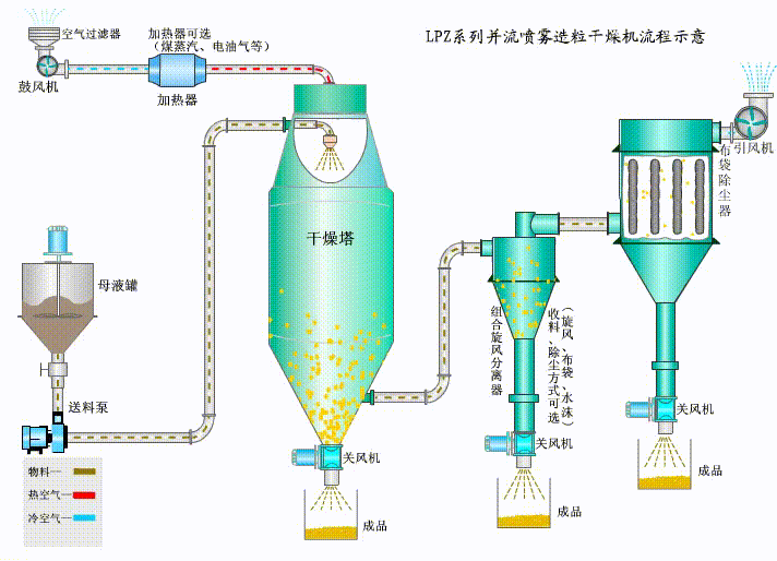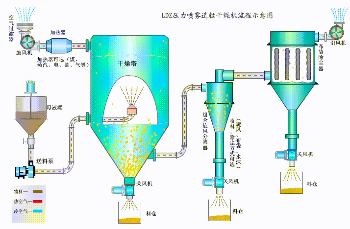 壓力噴霧干燥塔是一個把原料液放入霧化器內(nèi)分離為霧滴,以熱空氣或者別的氣體和霧滴直接接觸的辦法來獲取粉粒形狀產(chǎn)品的干燥過程。在20世紀三四十年代。噴霧干燥技術(shù)已普遍應(yīng)用于洗滌劑、乳制品、脫水食品、染料、水泥、化肥的生產(chǎn)過程中。目前常見的奶粉、速溶咖啡、方便食品湯料等便是從噴霧干燥過程中獲得的產(chǎn)品。 初,噴霧干燥技術(shù)應(yīng)用于我國乳品行業(yè),后來相繼被制藥、染料與洗滌劑等等行業(yè)應(yīng)用,如今噴霧干燥技術(shù)在我國的應(yīng)用已普遍。特別是在制藥與陶瓷行業(yè)。噴霧干燥的運用普遍。噴霧干燥技術(shù)在制藥行業(yè)有著特殊的用途,簡化且縮短了中藥提取液至制劑的半成品或者成品的工藝與時間,提升了生產(chǎn)效率與藥品的質(zhì)量。